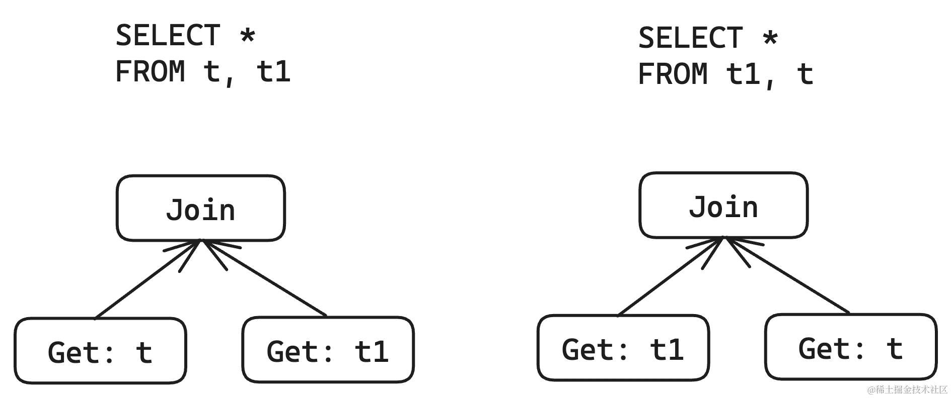 根据 Join 算子的交换律,我们可以合法交换 Join 的左右 child。使用 global id 的设计时,因为 attributes 可以表示为无序集合,因此这个操作对于 property derivation 毫无影响。但是使用 local id 的设计时这个操作就会让人痛苦不堪。