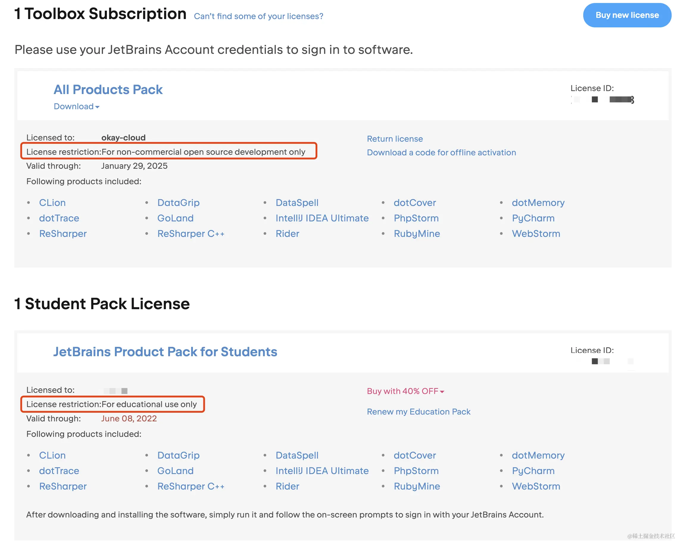 如下,我自己有通过学生和开源项目两种方式成功申请JetBrains的License。
