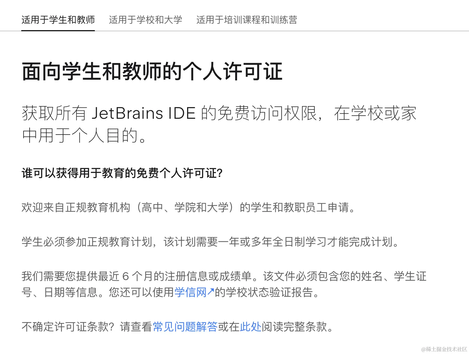 学术许可适用于学生和教师、学校和大学、培训课程和训练营,要求的话官网说明得更清楚。