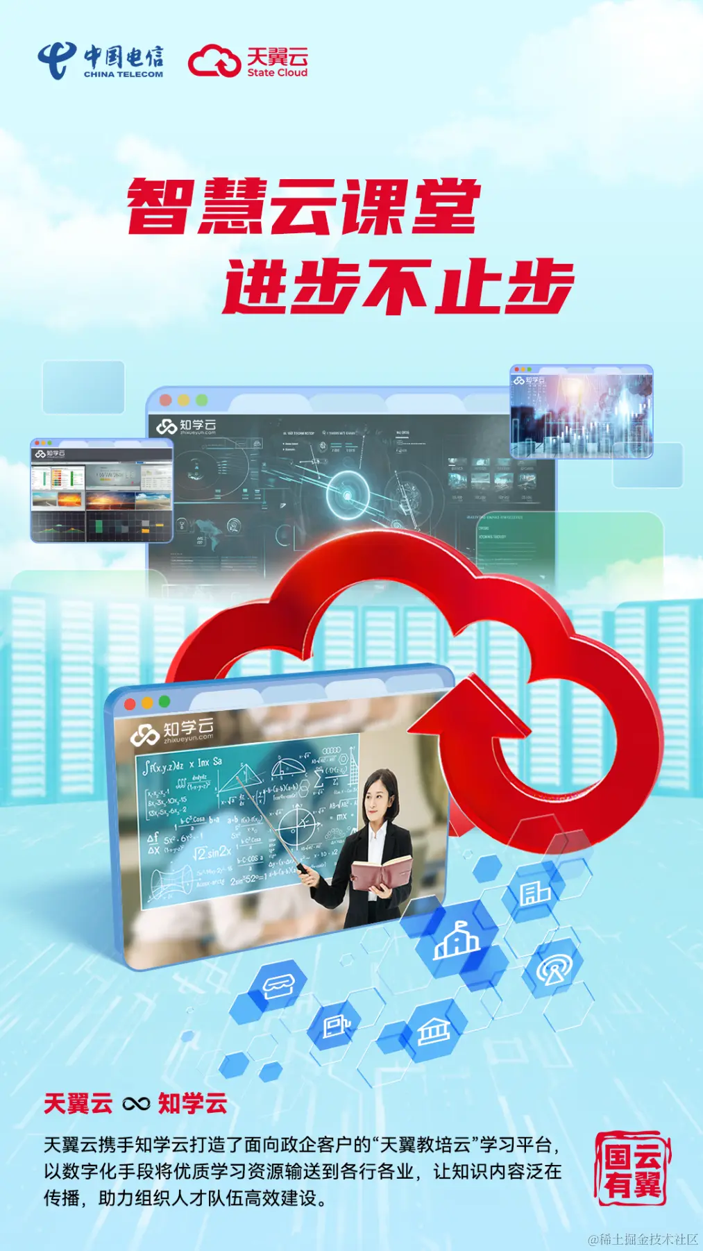 “天翼云和知学云在业务上的互补性非常强。一方面,知学云是国内数字化学习解决方案厂商,每年建云用云成本是一笔相当大的支出,同时需要专业化的服务。另一方面,天翼云作为云服务国家队,拥有国内领先的云技术,提供多样化的云产品,而且在安全加固、性能和稳定性提升方面提供巨大的支持。”天翼云科技有限公司政务行业中心总经理张星表示。