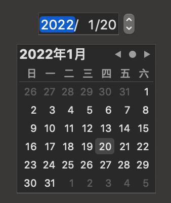 firstDayOfWeek = firstDay.week()// 6 因此需要将前面 6个位置:周末-周五 留给上个月 因此本月第一天就是daysOfLastMonth - firstDayOfWeek