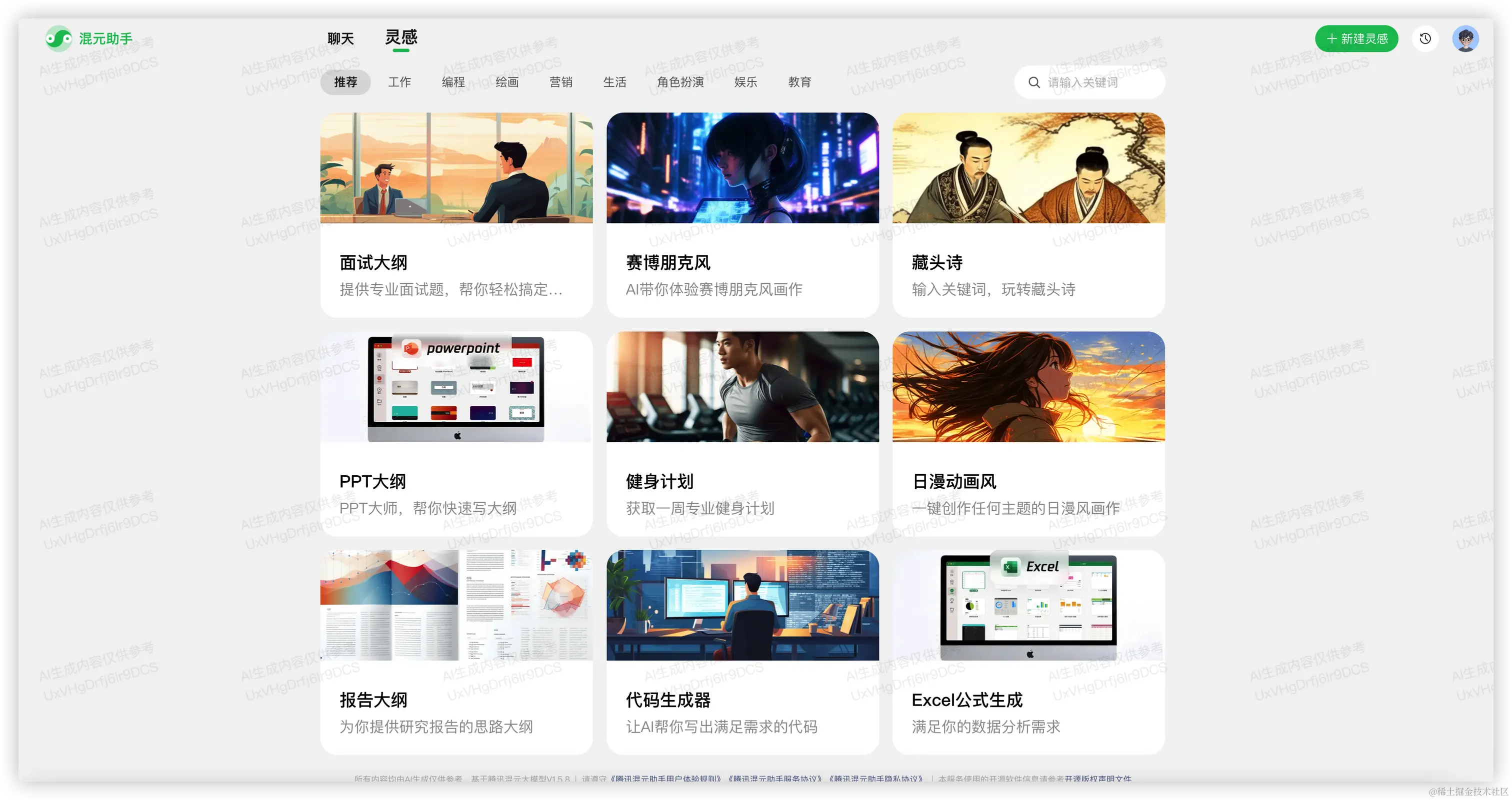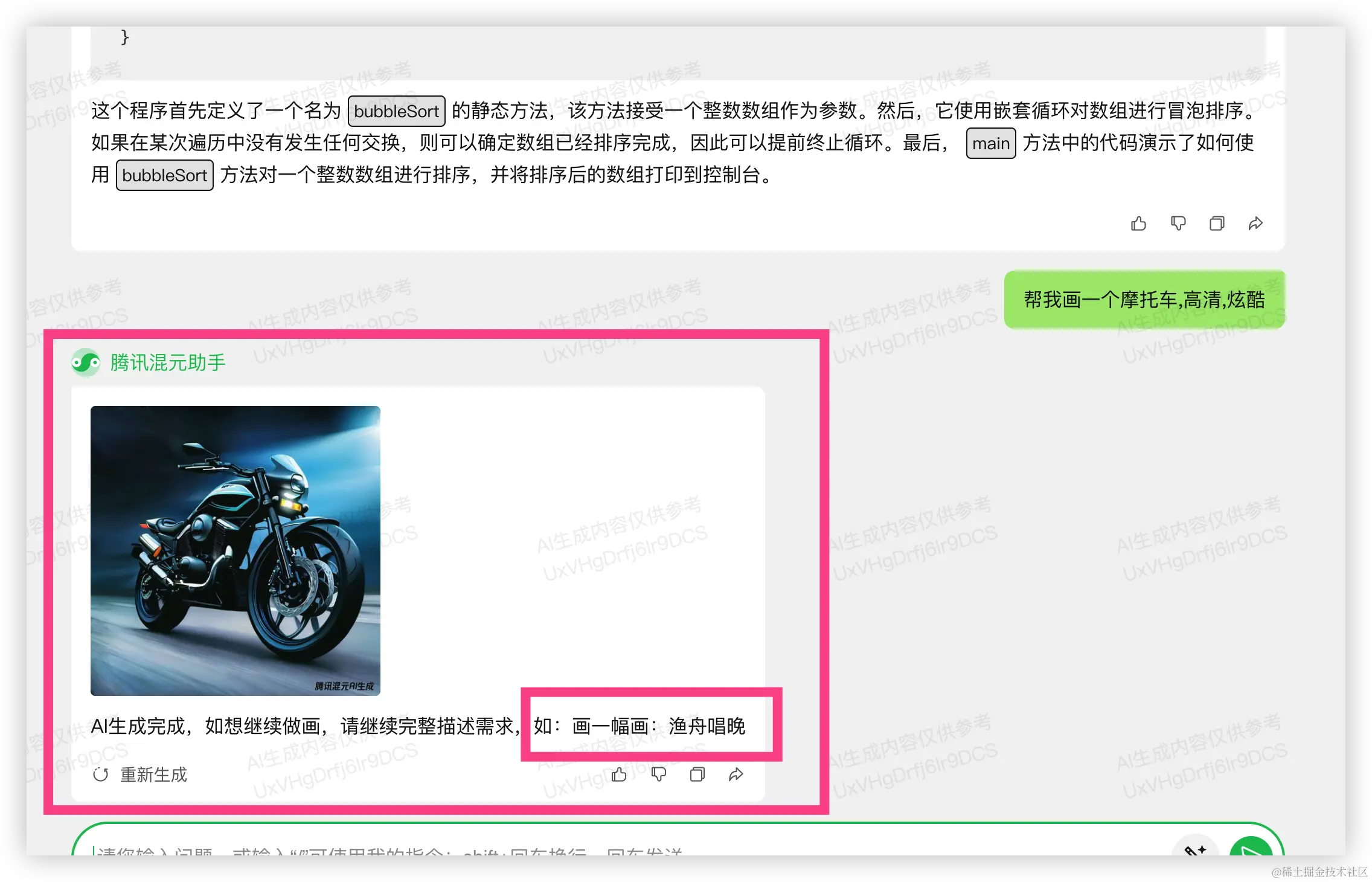 混元大模型不仅支持聊天对话还支持直接文字描述生成图片