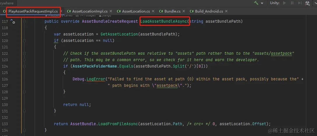 assetPackFilePath:这个路径会变,所以我在资源包下载完毕后,根据资产包里肯定会存在的一个资产调用PlayAssetPackRequest.GetAssetLocation()获取AssetLocation对象,AssetLocation.Path是资产包的路径。