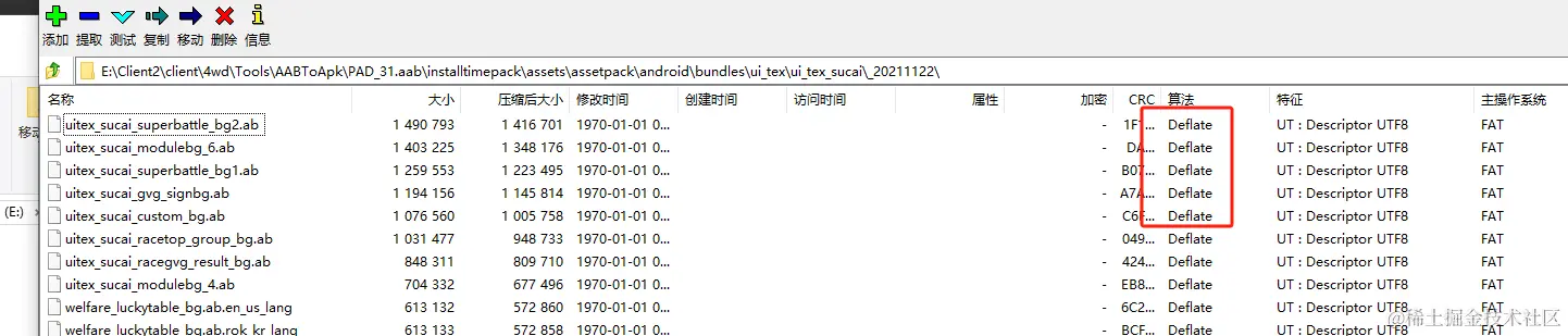 2. 打包完后使用7z压缩工具查看包体发现资源被进行了压缩。