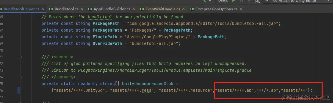 4. 在Google打包工具中发现BundleToolHelper中可以添加未压缩匹配字符列表,进行添加: