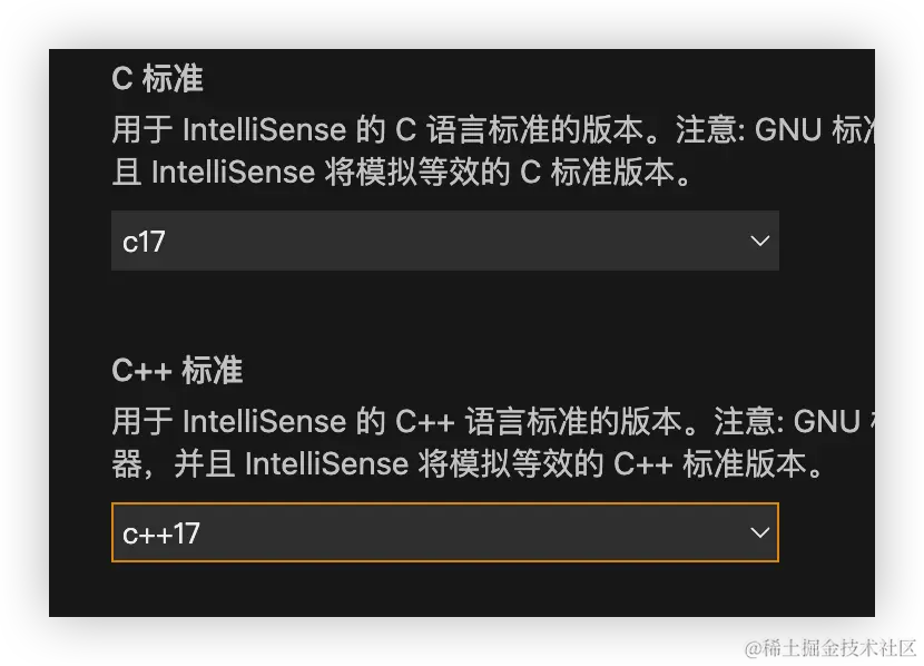 将 C 标准设置为 c17,C++ 标准设置为c++17