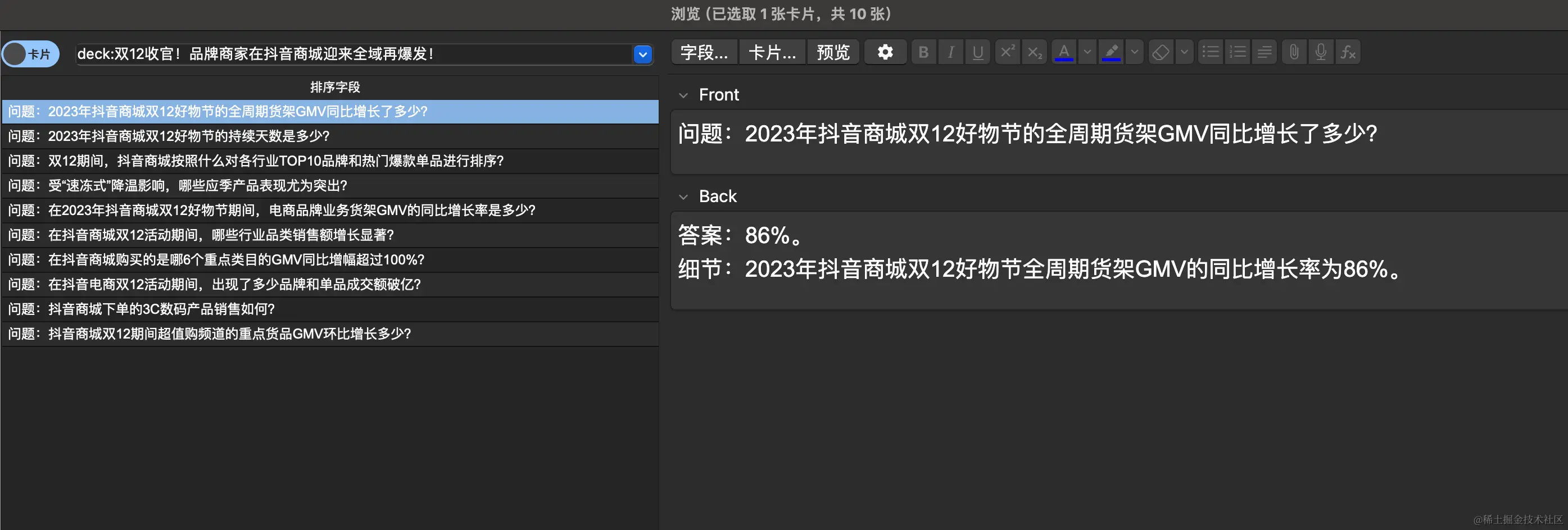 将阅读内容生成抽认卡,以问答形式有计划的反复练习,实现高效重复和强化