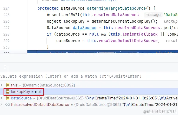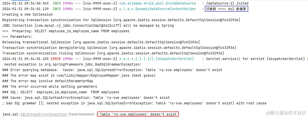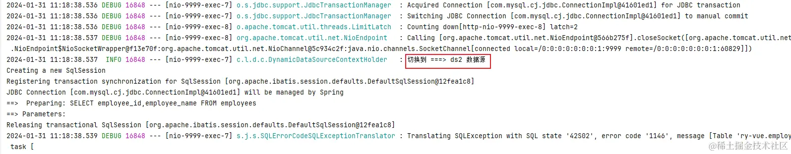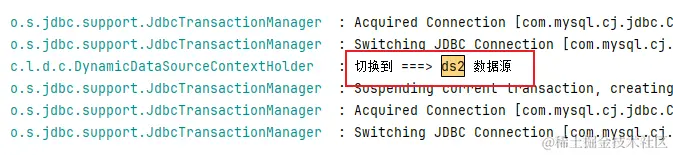 这是咋回事啊,我靠,切面没成功吗,key还是null,所以获取到的数据源就是默认的数据源了。来看一下控制台是否打印切换数据源的信息:确实没有信息