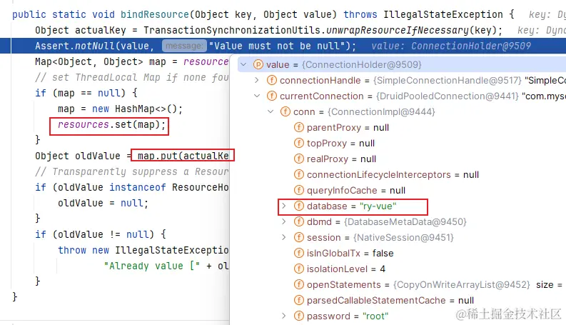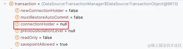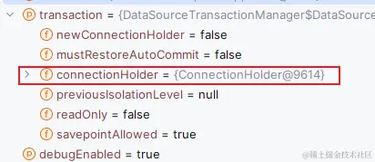 先来看一下一个重要的事情,我们发现进来这个方法之后 Transaction 对象里还是有之前的连接缓存的,这是万万不行的,所以需要清掉。