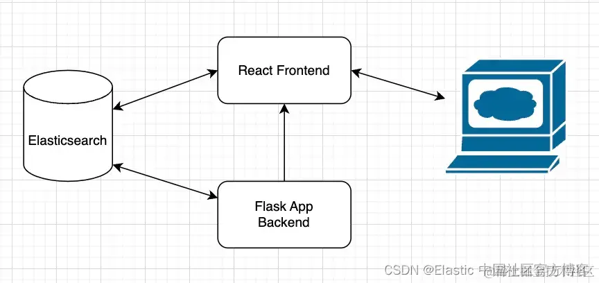 它由 Flask 后端和 React 前端组成。 后端配置了环境变量以与 Elasticsearch 建立连接。