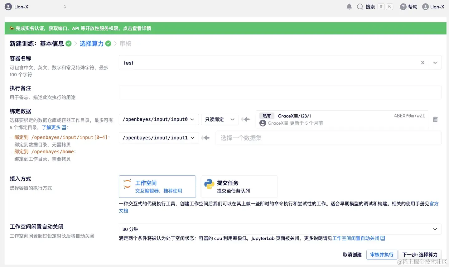 选择要绑定的数据,可以选择平台发布的公共数据集,也可以选择绑定其他容器的输出