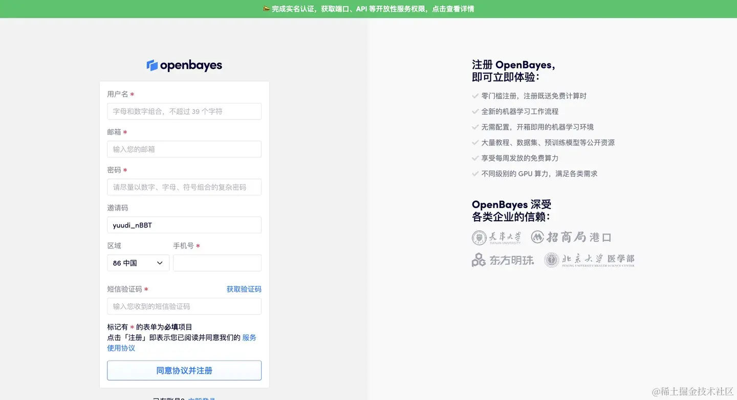 本教程主要为大家演示如何在 OpenBayes贝式计算平台创建算力容器,新朋友点击下方链接注册后,即可获得 4 小时 RTX 4090 + 5 小时 CPU 的免费使用时长哦!