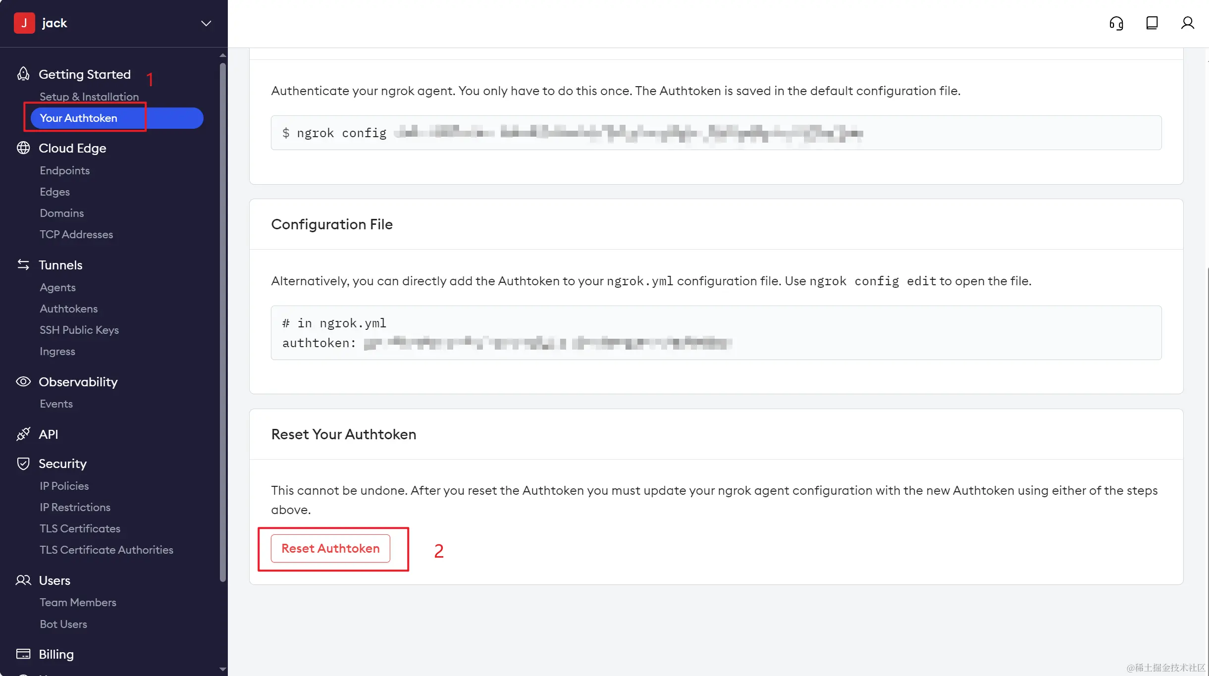 2.保存好自己的Authtoken,不要泄露,如果泄露记得去官网重置