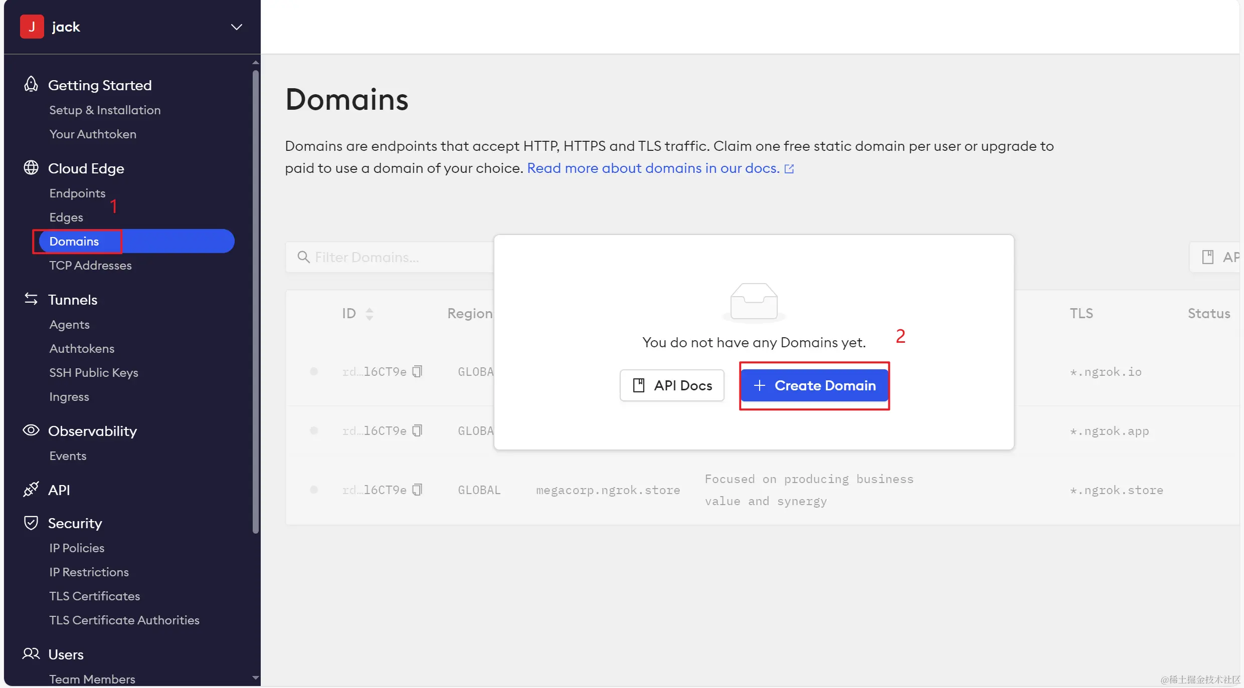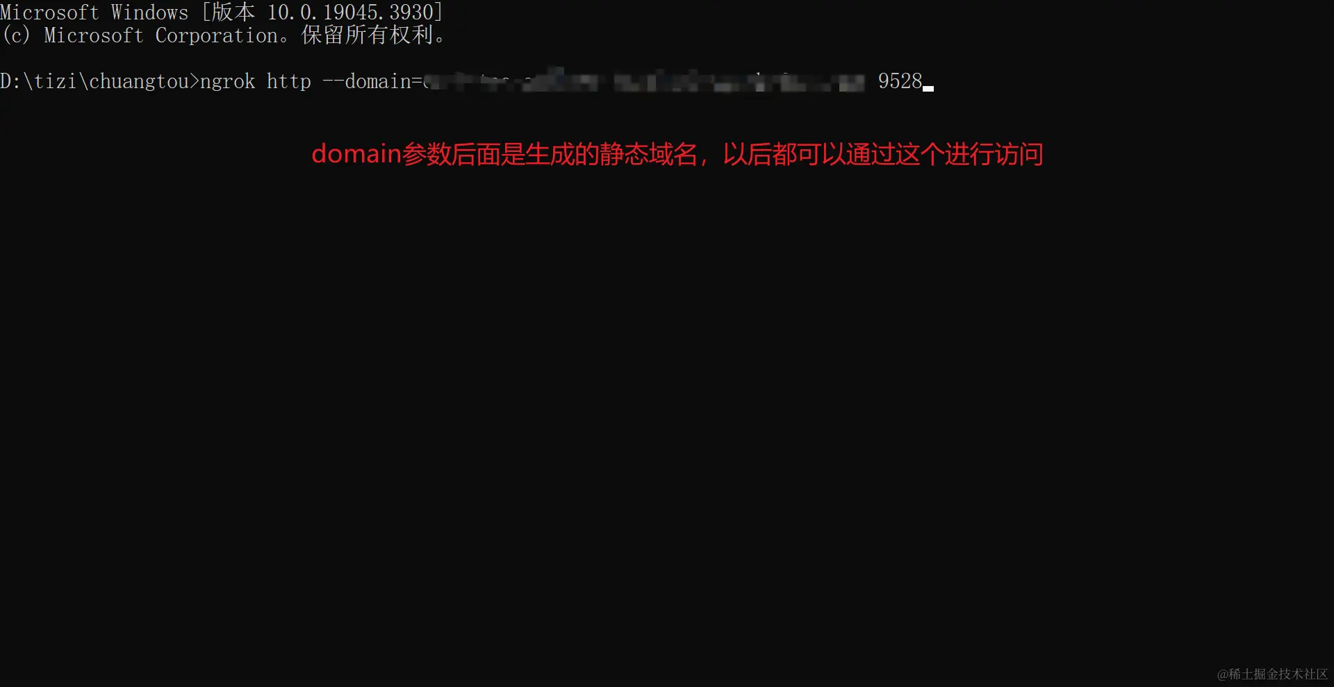 点击之后会自动给我们生成一个免费的域名,复制这行命令