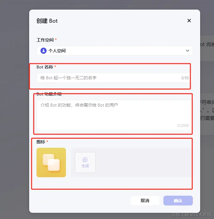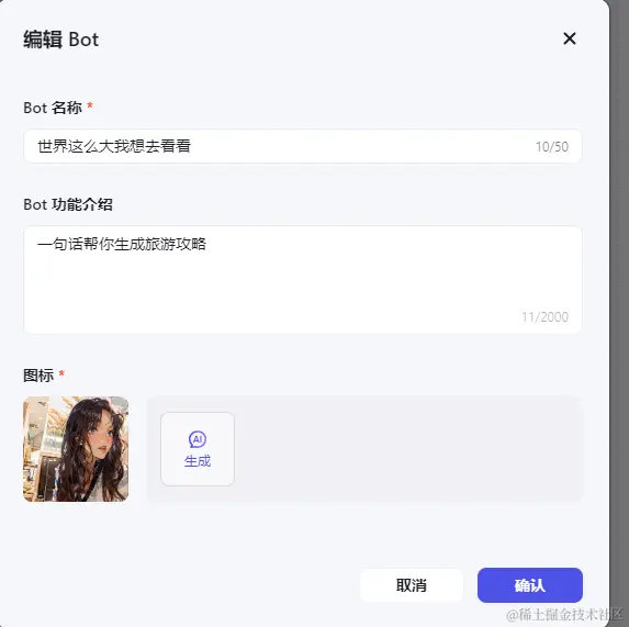 出现以下弹框,在里面输入自己的名称,功能介绍,上传头像,不上传的话点击生成会自动生成一个头像。