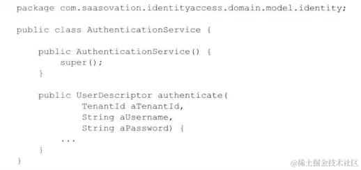 该接口和那些与身份相关的聚合定义在相同的模块中,因为AuthenticationService也是一个与身份相关的概念。