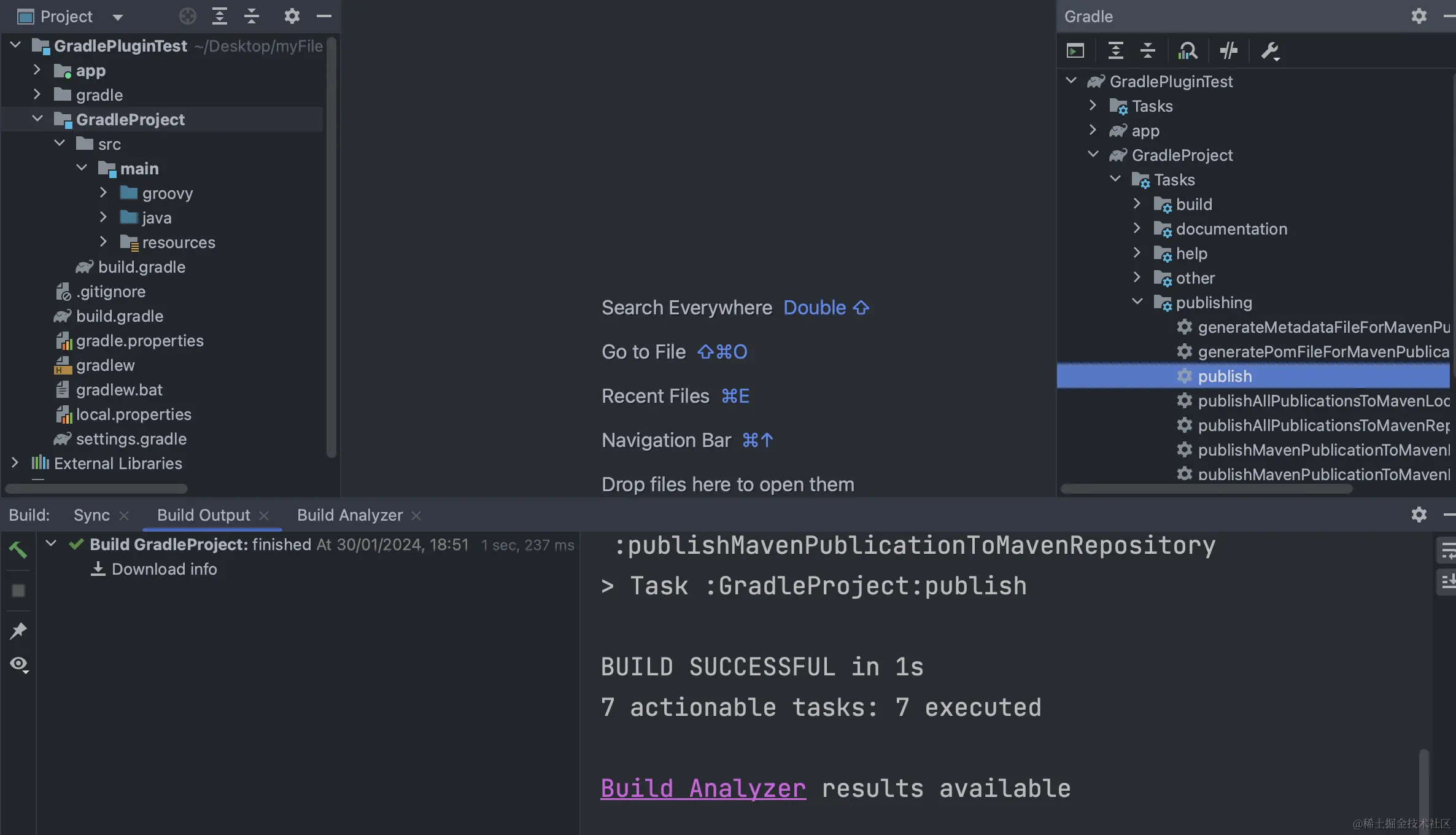 - 此时执行publish Task任务,完成插件部署到本地的maven仓库