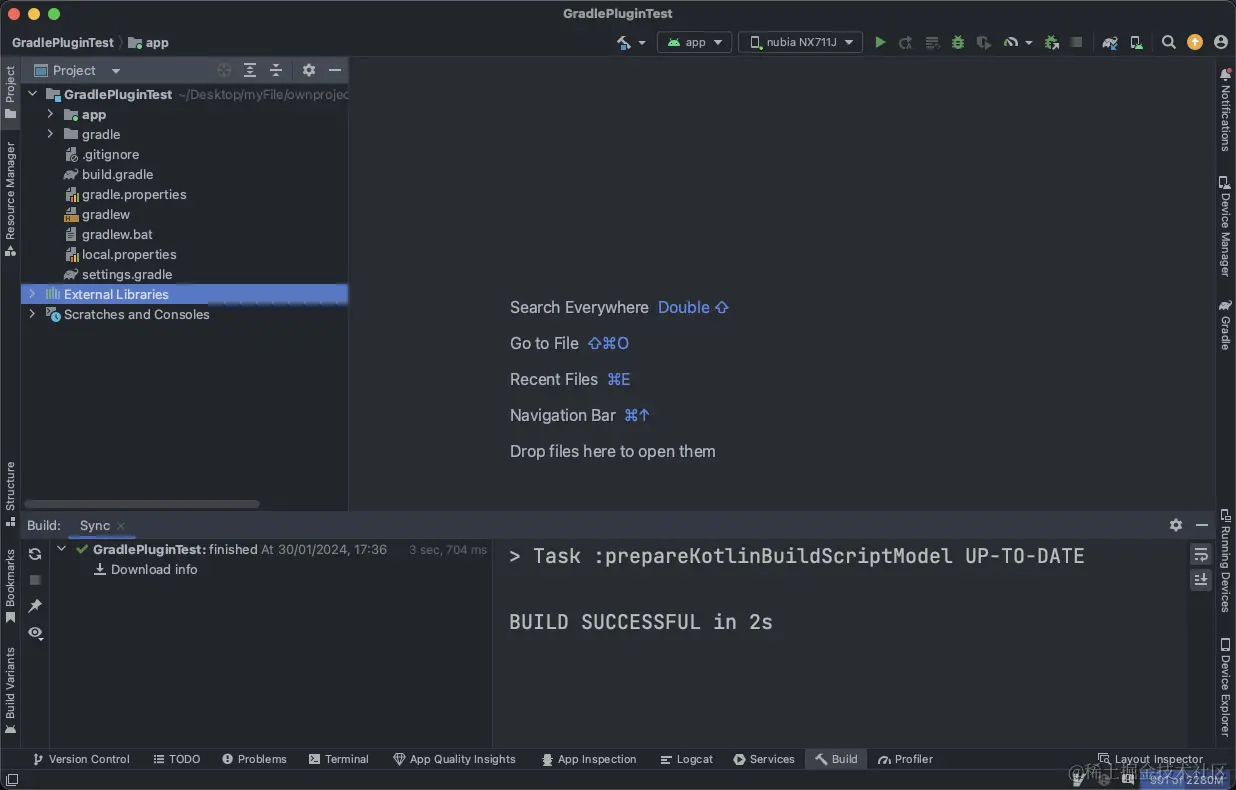 首先我们创建一个工程“GradlePluginTest”,并等待创建完成