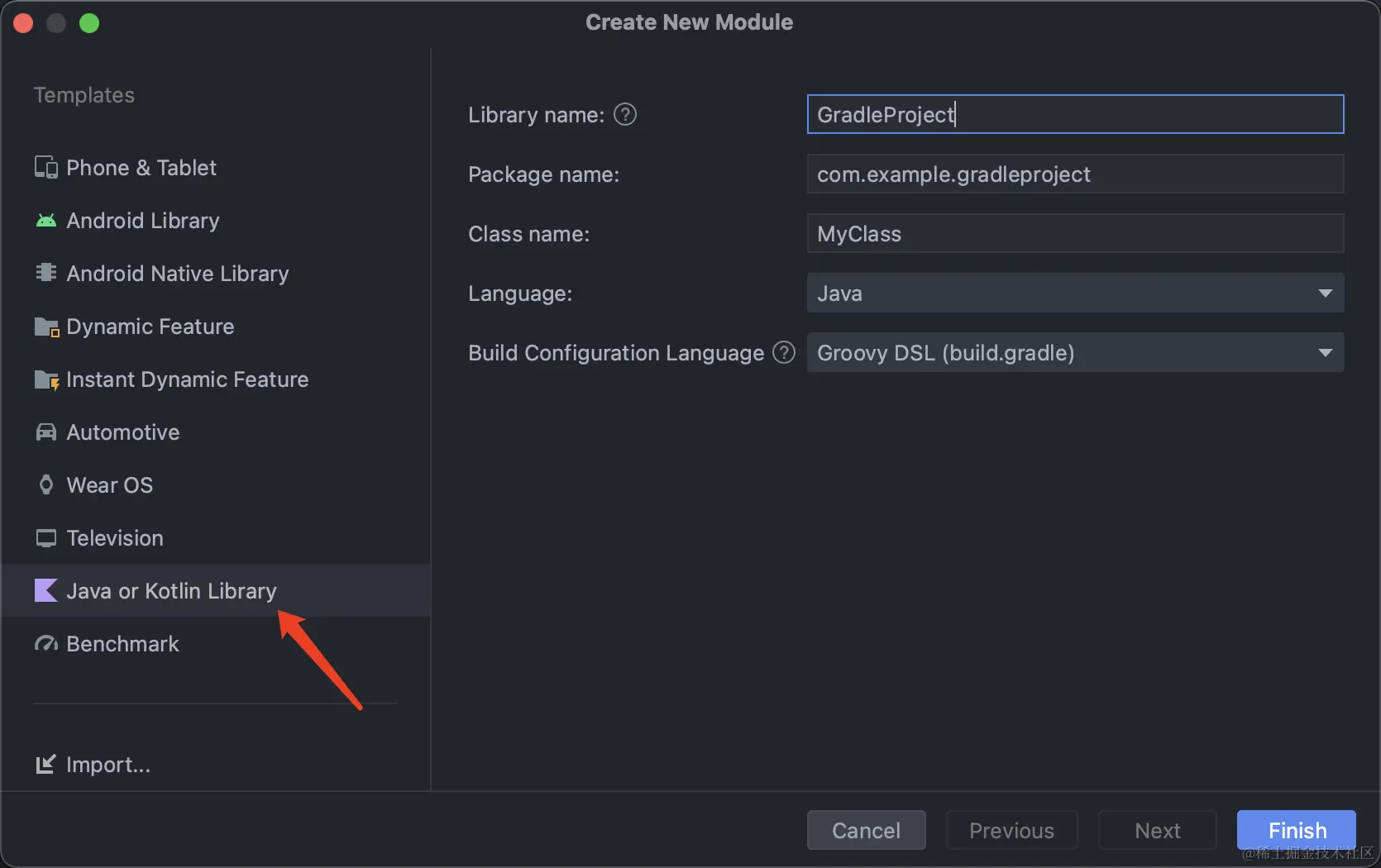 接着我们来创建插件项目,选择‘Java or Kotlin Library’并等待创建完成