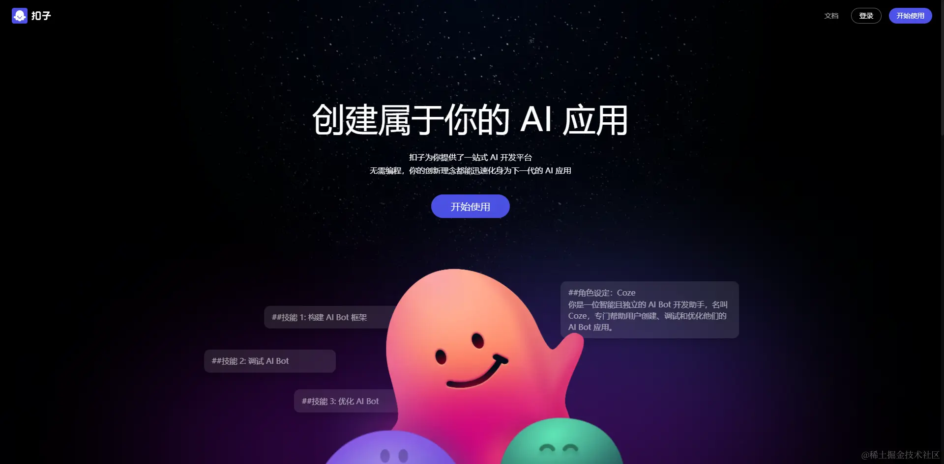 AI聊天机器人已不再是遥远的未来,而是触手可及的现实。扣子正是这个时代的产物和见证者,一个能让每个人都能参与进来,突破创新限制的创世平台。现在就加入扣子,共同参与塑造对话机器人的未来吧!