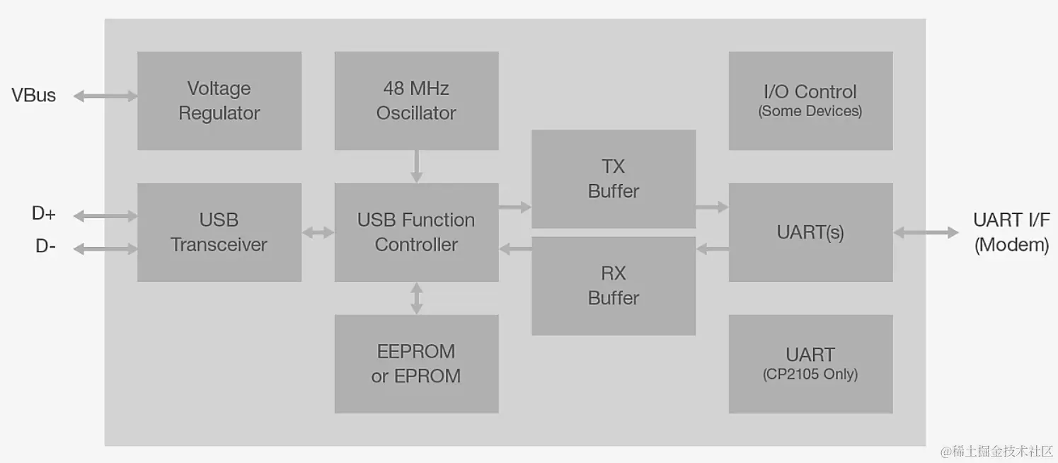 CP210x 是一款常见的高端、高度集成的 USB 至 UART 的桥接控制器,提供完整的即插即用接口解决方案。