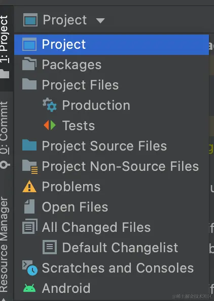 可以绝对路径Projet方式展示,也可以安卓目录结构展示