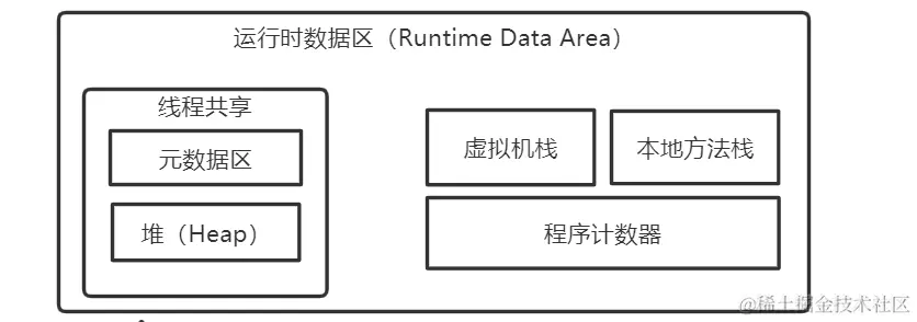 - 元数据区:JDK1.8开始的说法,之前称为方法区Method-Area,存储已被虚拟机加载的类信息、常量、静态变量、即时编译器编译后的代码等数据。
