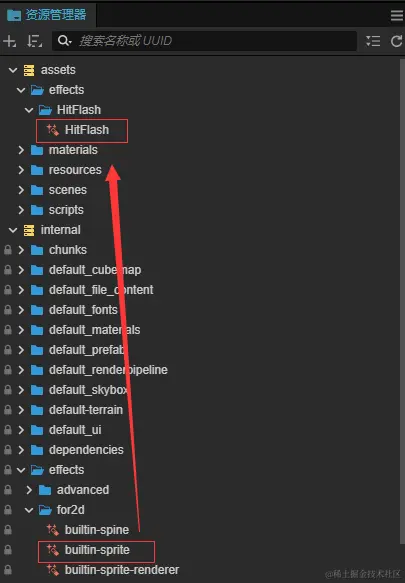首先我们找到系统自带的builtin-sprite这个Shader,复制一下,我们去修改这个Shader实现闪白效果。
