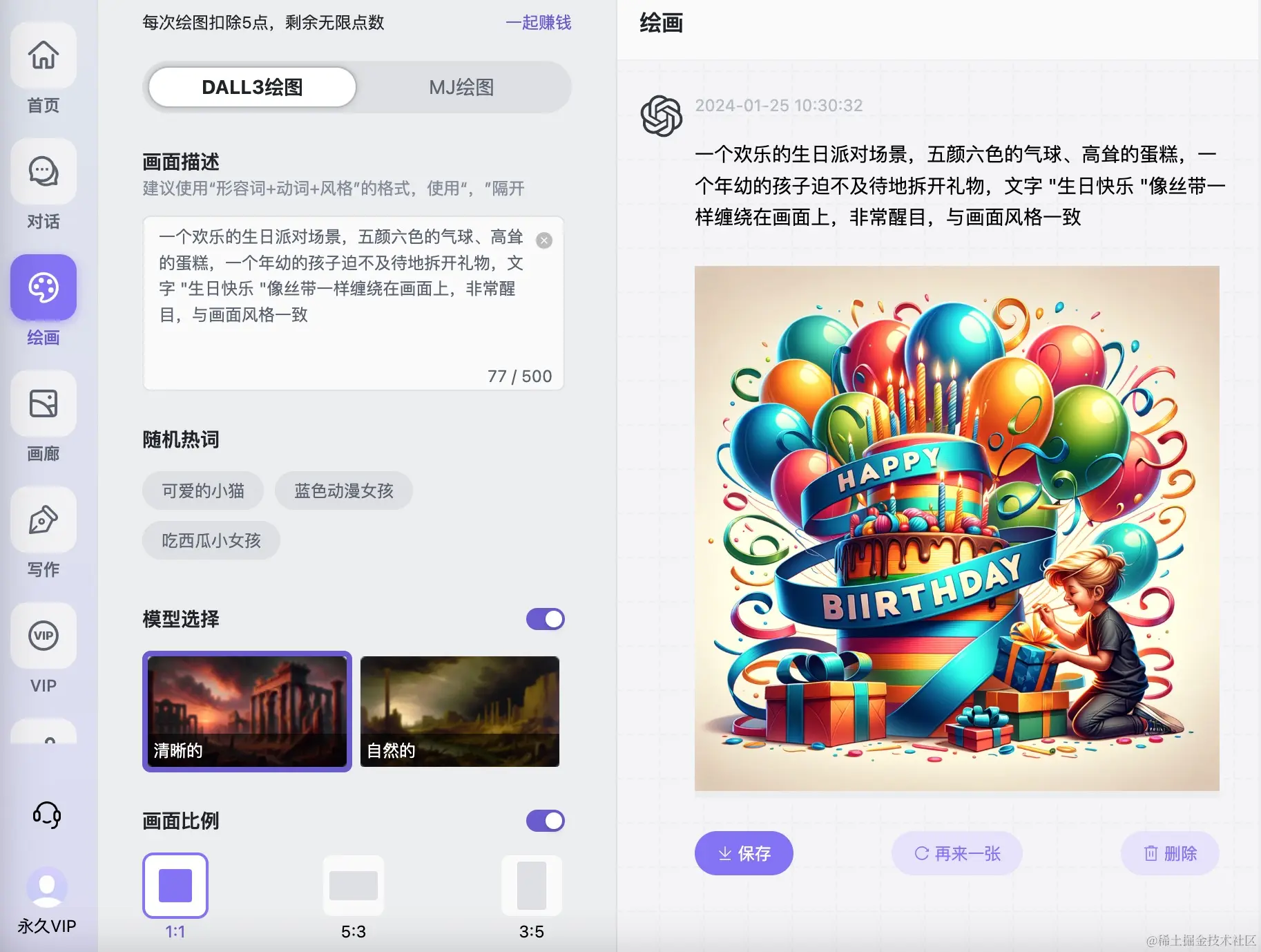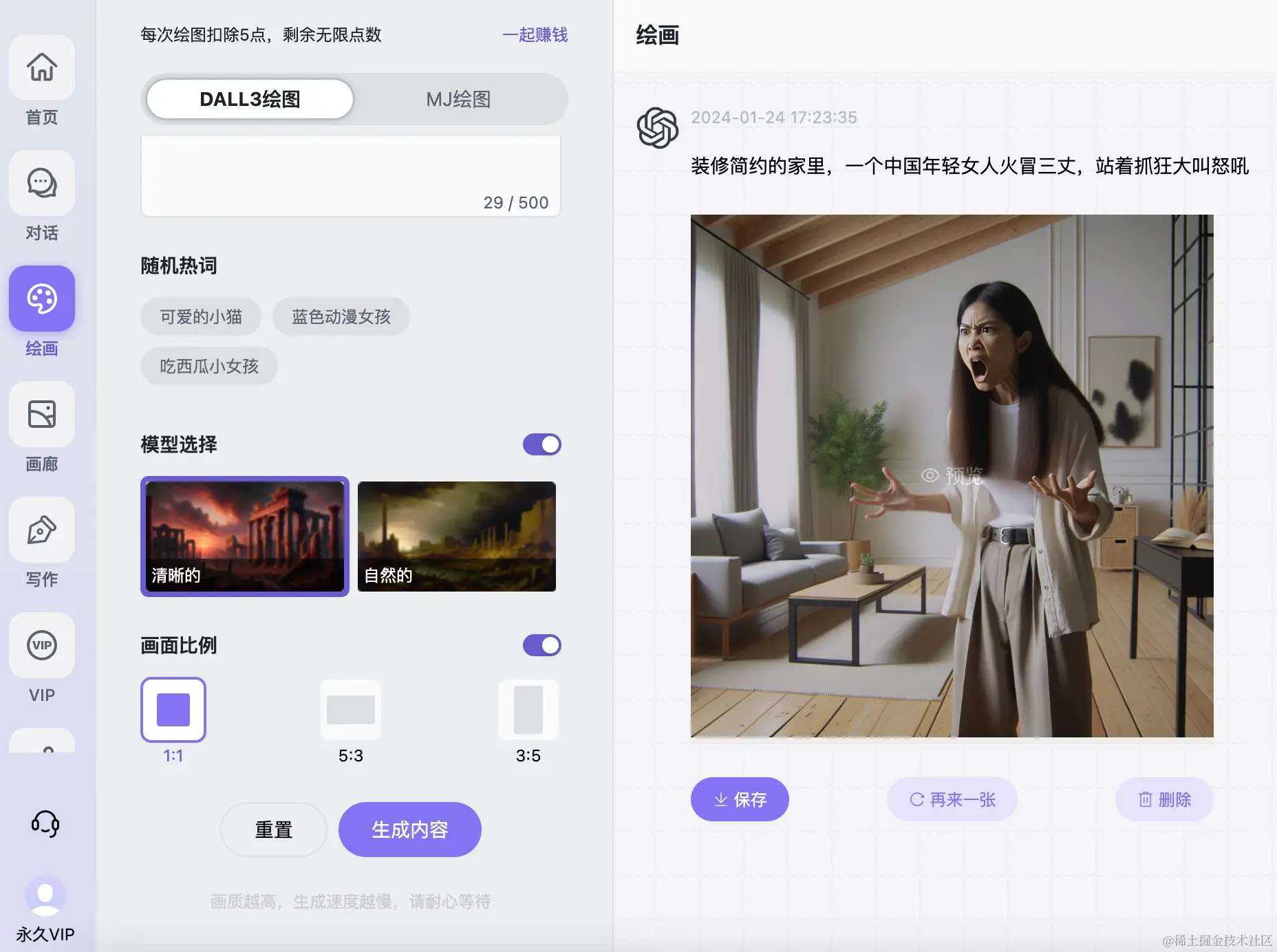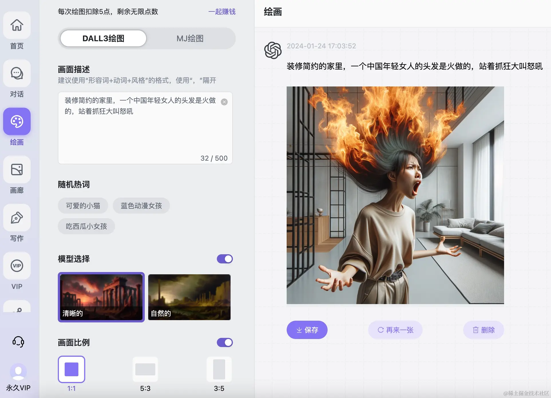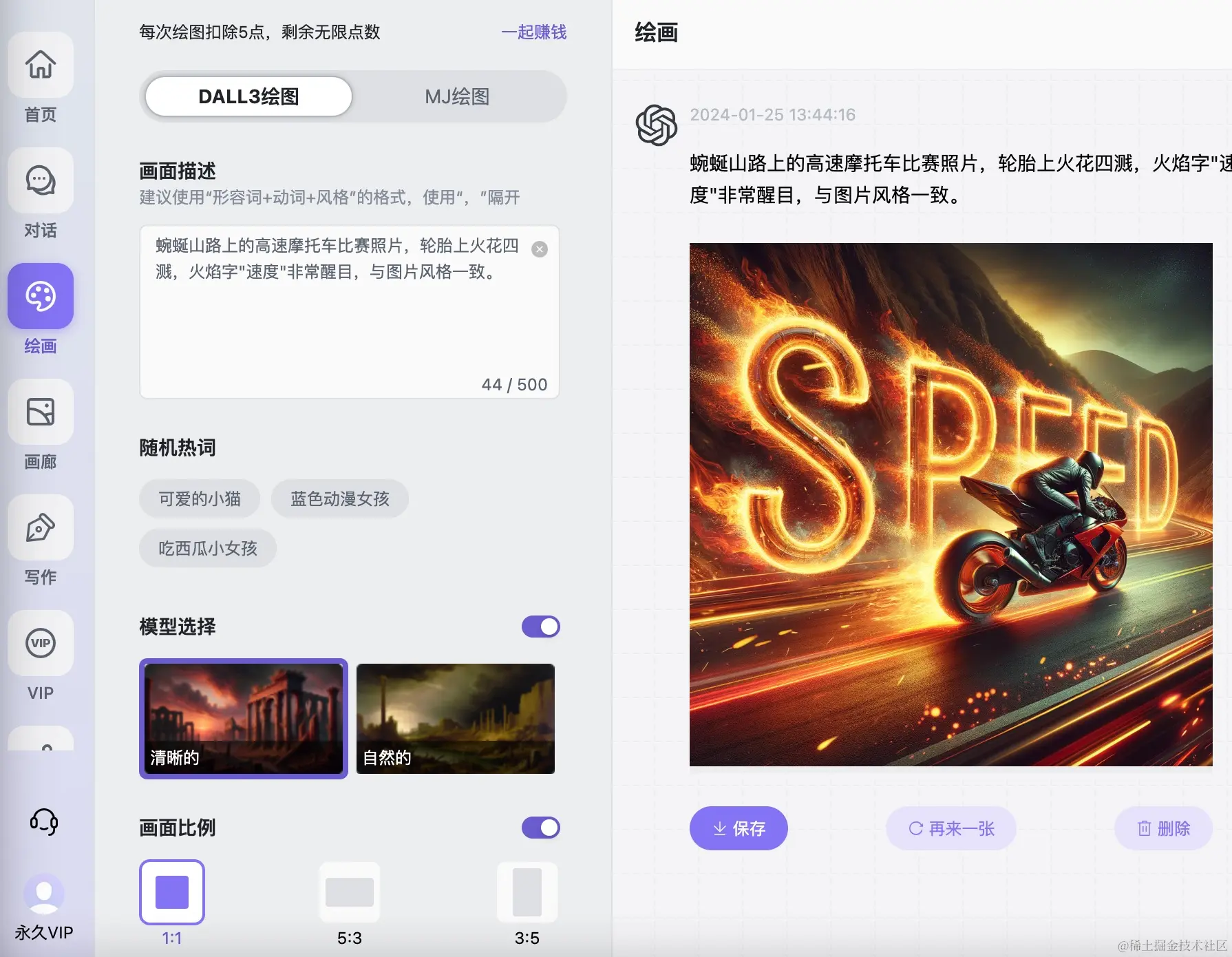 打开【绘画】工具,使用该英文提示词生成图片,如果有不满意的地方,可以重新调整