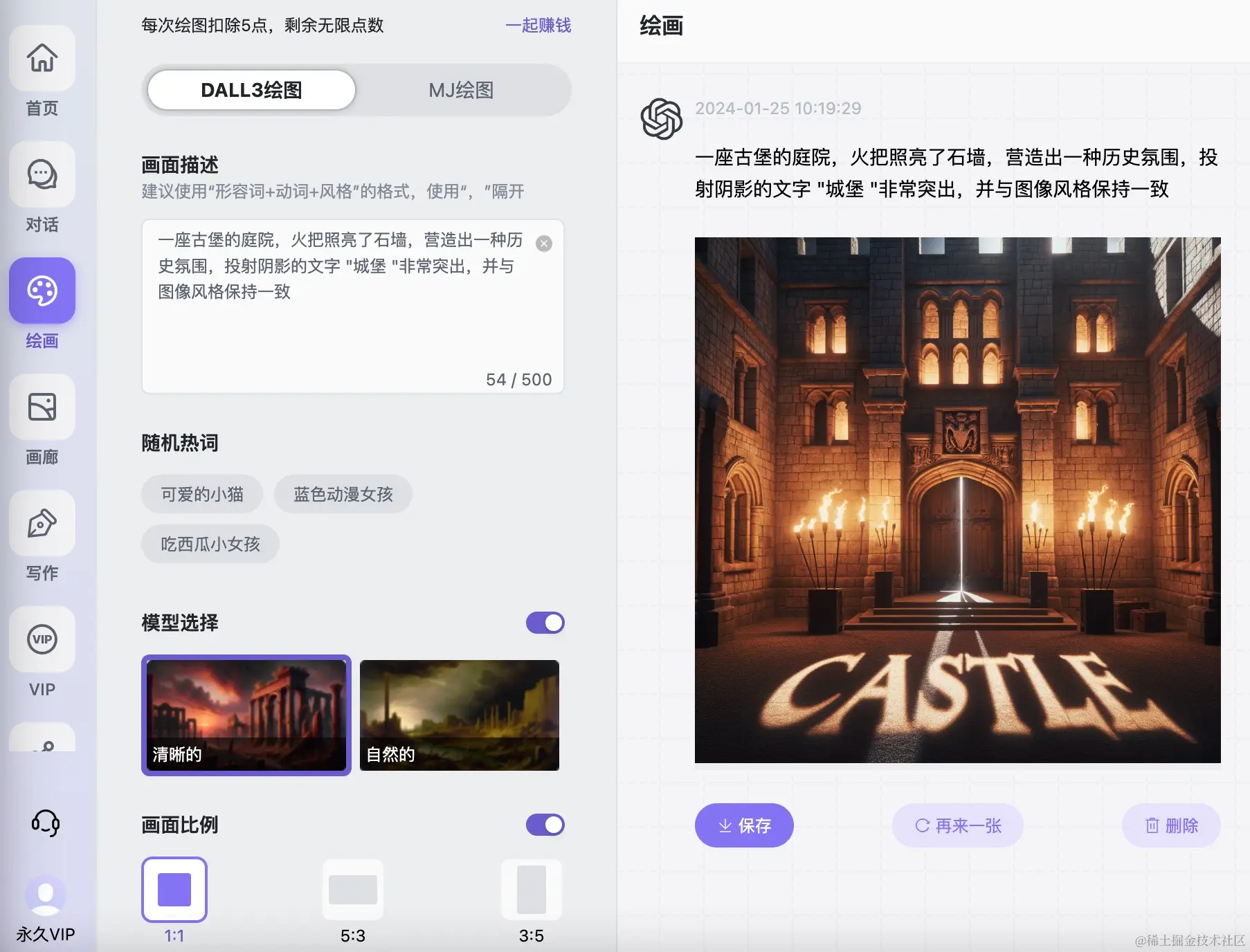 - 影子:[图像提示词],投下的阴影非常醒目,并与图像样式保持一致。 eg:一座古堡的庭院,火把照亮了石墙,营造出一种历史氛围,投射阴影的文字 "城堡 "非常突出,并与图像风格保持一致。