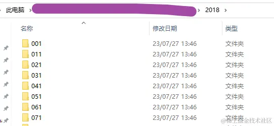 其次,在每一个表示年份的子文件夹中,同样具有着大量的子文件夹,此时每一个子文件夹都表示一个天数;以上图中的2018文件夹为例,将其打开后,如下图所示。
