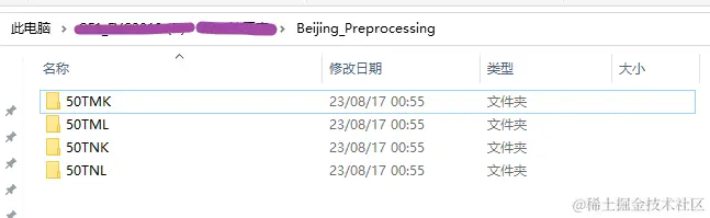 运行上述代码,我们即可在目标文件夹中,首先看到每一个分幅的对应的子文件夹,如下图所示(我这里就是只有4个分幅)。