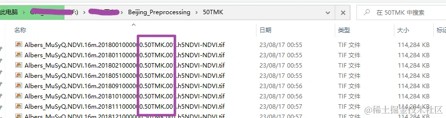 接下来,就可以通过for image_file in os.listdir(day_path):来遍历当前天数子文件夹中的文件。在这里,我们需要加以判断——如果文件名以 NDVI.tif结尾,表示这是我们想要的遥感影像文件。