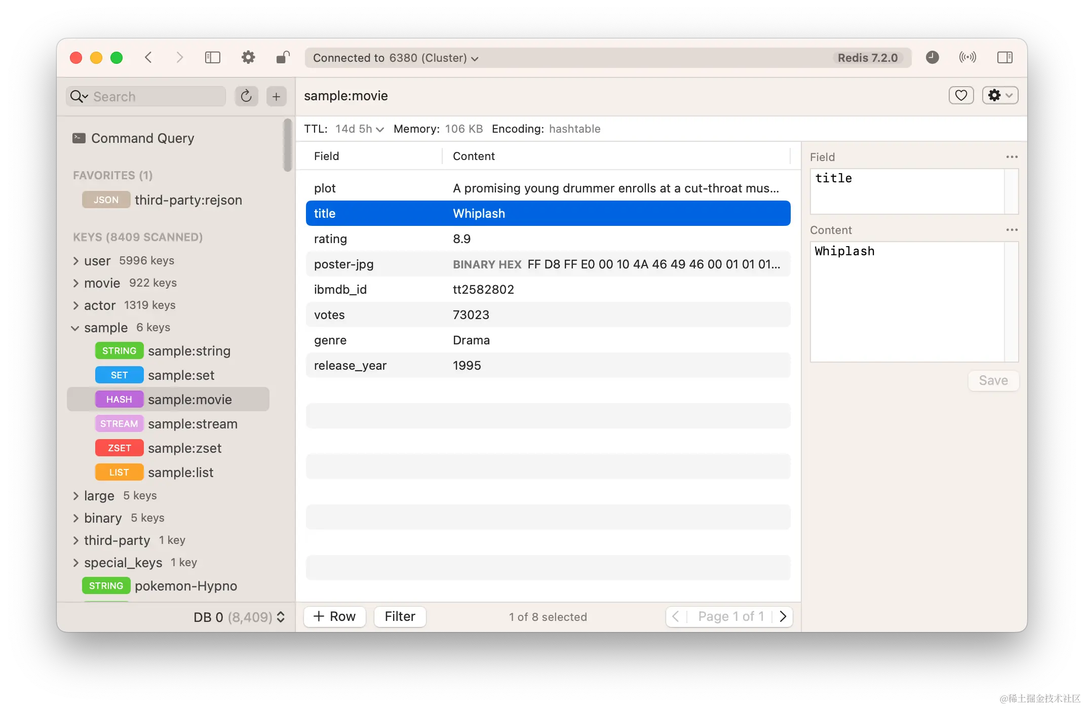 这是一款免费的跨平台客户端,界面稳定简洁,支持哨兵,集群,ssh通道,ssl认证,stream数据类型,订阅功能,树状视图,命令行,暗黑模式,以及多种格式化方式。