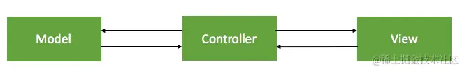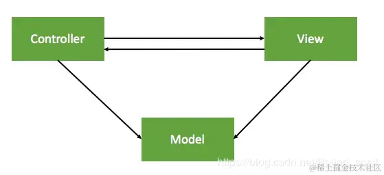 是iOS开发中常用的模式 ,Model和View之间没有任何直接到关系,通过Controller作为桥梁将二者联系起来。(Controller可初始化数据并将数据传递给Model;Model可以将数据传递给Controller,Controller将这些数据赋给View展示;View可以传递事件给Controller,Controller通过事件判断区出来数据Model)。