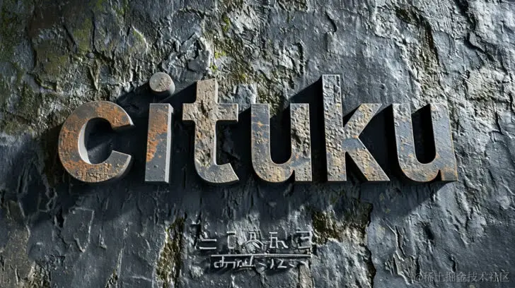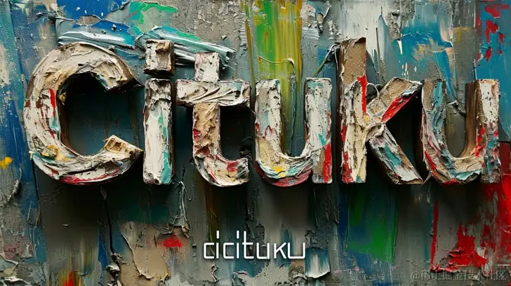 一种用丰富质感的帆布绘制的cituku字,风格融合了Greg Olsen、超写实细节、强烈运用负空间、撕裂、磨损边缘、移轴,呈现明亮的雕塑效果。