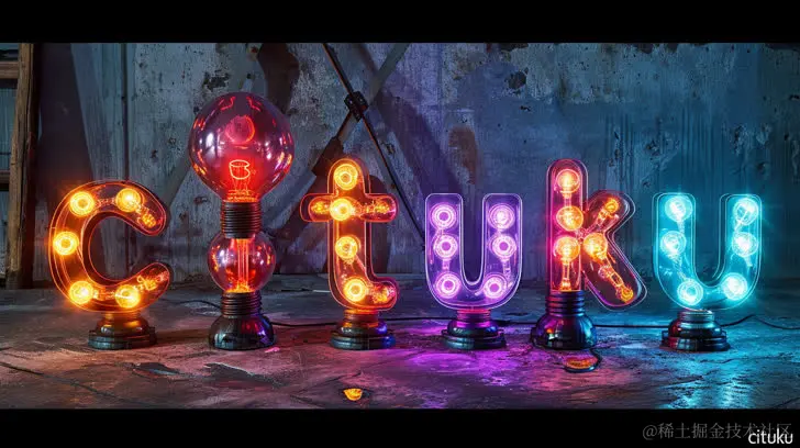用看起来像真实灯光的彩色灯泡制成的cituku字母,风格融合了工业超现实主义、Ingrid Baars、商业意象、细致入微、数字增强、工业和产品设计、Group f/64。