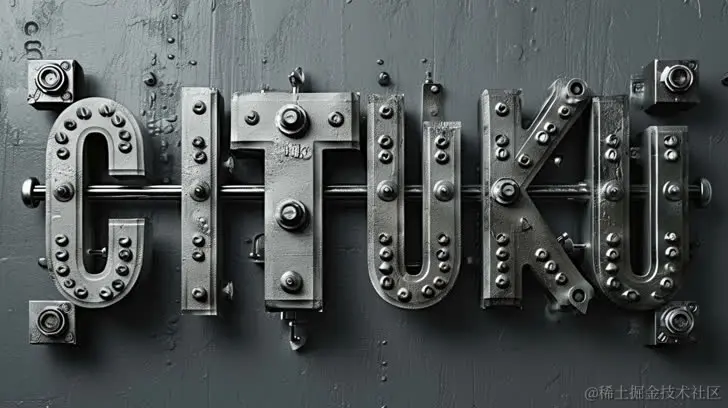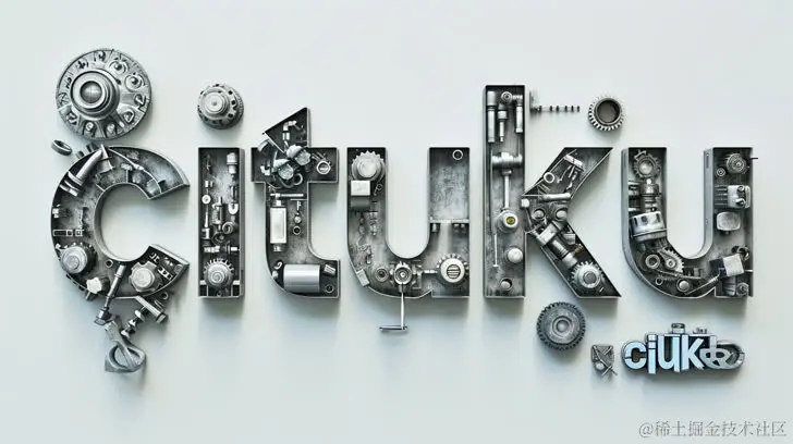 由机械零件制成的金属字母cituku,风格融合了#screenshotsaturday、石墨写实。