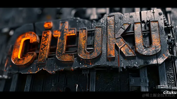 字母cituku在黑色、金属和铁上,风格融合了Beeple、哥特宏伟、CryEngine、深青色和橙色、James Paick、机械设计、锐利/刺人。