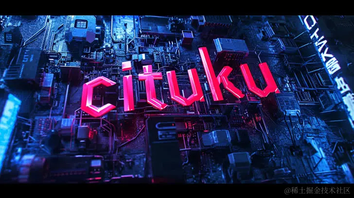 用电气设备和其他电气设备制成的cituku字母,风格融合了数字艺术技术、极光庞克、PS1图形、高速胶片、苹果核心、创新技术、原始而有力。