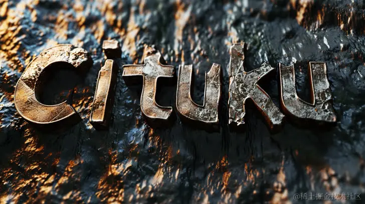 在黑色背景上渲染的cituku字母,风格融合了石头、金属质感、超高清图像、照片堆砌、粗糙的边缘、Sony Alpha A1。