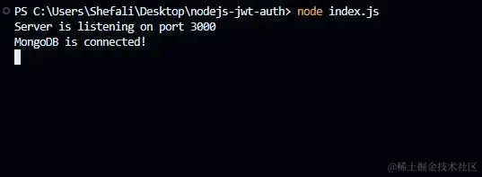 在MONGODB_URL最后我们加入node.js-jwt-auth,这是我们的数据库名称。