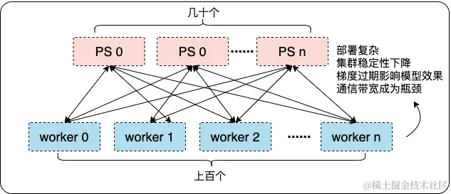 ▪大量参数IO使得参数服务器与训练节点之间的参数传输成为通信性能瓶颈。