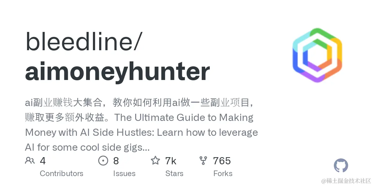 每天AI的热度铺天盖地,但是小伙伴们总是会纠结,有什么搞钱的机会呢?今天的开源项目就是AI副业赚钱大集合:aimoneyhunter