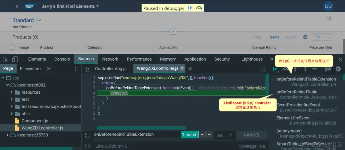 这样,运行时,在 Fiori Elements List Report 表格被渲染之前,我们的二次开发代码就能被框架调用: