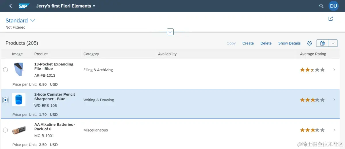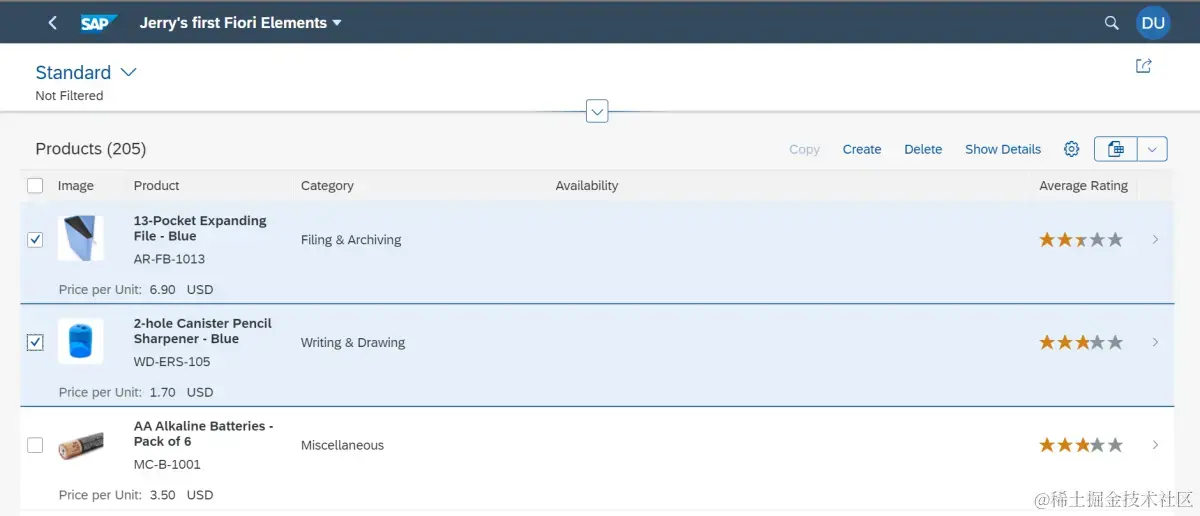 Fiori Elements 框架默认生成的 List Report 应用的表格部分,只支持单选,即下图表格行项目最左端的圆形选择控件。
