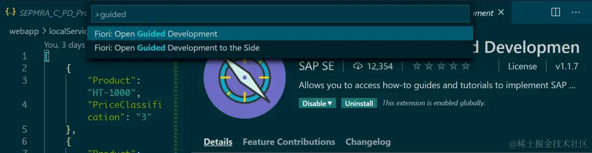 Ctrl+Shift+P,打开 Guided Development,这也是 SAP Fiori tools 扩展包里的扩展之一: