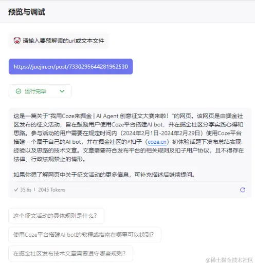 😀 临近春节,大伙都无心工作,沉迷摸🐟,刷掘金时,无意中看到了《我用Coze来掘金 | AI Agent 创意征文大赛来啦!》就:字节的「Coze 扣子」AI Bot开发平台在2月1日宣布上线,号称:无需编程基础,可快速搭建基于AI模型的各类问答Bot,并将其发布到各类社交平台和通讯软件上!