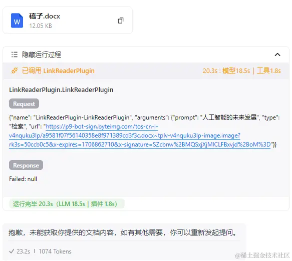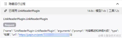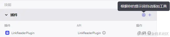 点完看到AI给我们加了一个 LinkReaderPlugin 的插件,鼠标悬停在感叹号上可以看到插件的简介: