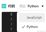 点击 在IDE中编辑,进入代码编辑页,目前只支持两种语言 JavaScript 或 Python,点击左上角可以进行切换: